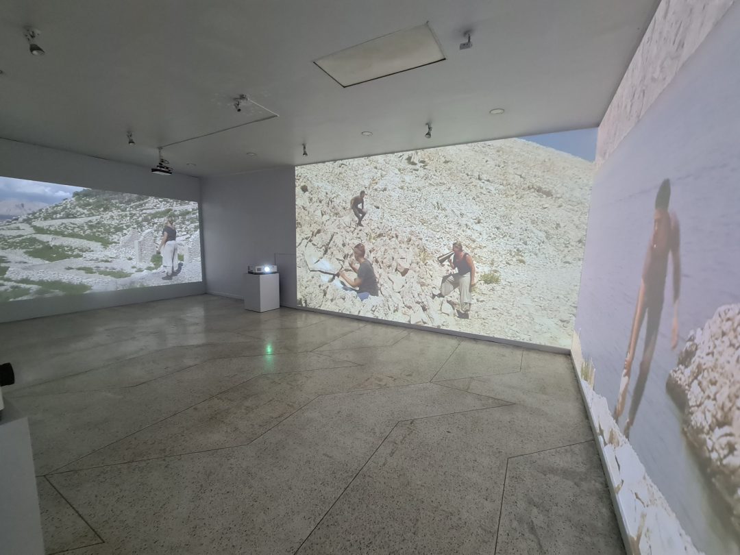 The exhibition at the Jorge Vargas Museum is conceived as a space of various flows. It transforms into an island, an island-like ambiance, a site of memory, a simulacrum of an island, a conduit for experience, a link between past events and memory. It creates a space for reflection and complementary thinking that encompasses visual materials – drawings, photographs, and objects – produced through artistic research; a place for gestural interpretation of the daily torture of women on Goli Otok and Sveti Grgur in the form of a three-channel video installation featuring performances by three artists – contemporary dancer Zrinka Užbinec, instrumentalist Jasna Jovićević, and vocalist Annette Giesriegl. Through the medium of movement, voice, and sound, they recreate the oppressive daily life of prisoners in individual and collective performances on the site. Additionally, it incorporates a zone of participation, which includes the mentioned workshops and forms of audience participation in memory dissemination, where participatory threads constantly reconfigure mechanisms of understanding marginal historical phenomena.