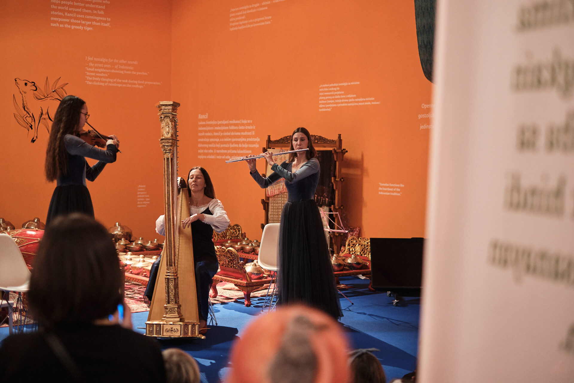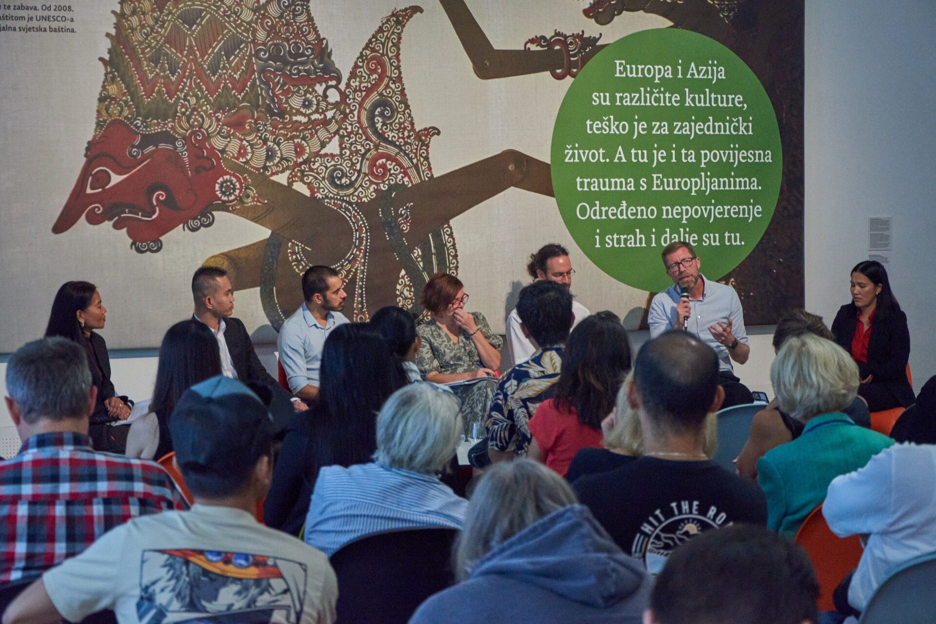 Curator: Irena Bekić / Project coordinator: Ivana Završki /// Collaboration coordinators for the Embassy of the Republic of Indonesia in Zagreb: Derian Antonio Daniswara, Marina Pretković / Collaborator and collaboration coordinator for Indonesian culture: Marina Pretković / Collaborators for Indonesian culture: Wirdah Habsyi, Murni Nyaristi / Collaborator for the gamelan programme: Julija Novosel /// Collaboration coordinators for Filipino culture: Vida Kličko, Jerica Grgurić / Collaboration coordinator for the Embassy of the Republic of the Philippines in Vienna: Chryzl Sicat / Production of traditional Filipino parol lanterns: Ernesto David Quiwa /// Statements by Nepali workers: Dženana Kalamujić / Research on social distance towards foreign workers (incorporated into the project On the State of the Nation): Margareta Jelić / Texts in the exhibition space: Ivana Završki / Illustrations in the exhibition space: Lora Elezović / Translation: Mirta Jurilj, Marina Pretković / Proofreading: Dunja Aleraj Lončarić /// Installation and event photography during the exhibition: Ana Opalić, Vanja Babić, Sanja Bistričić Srića