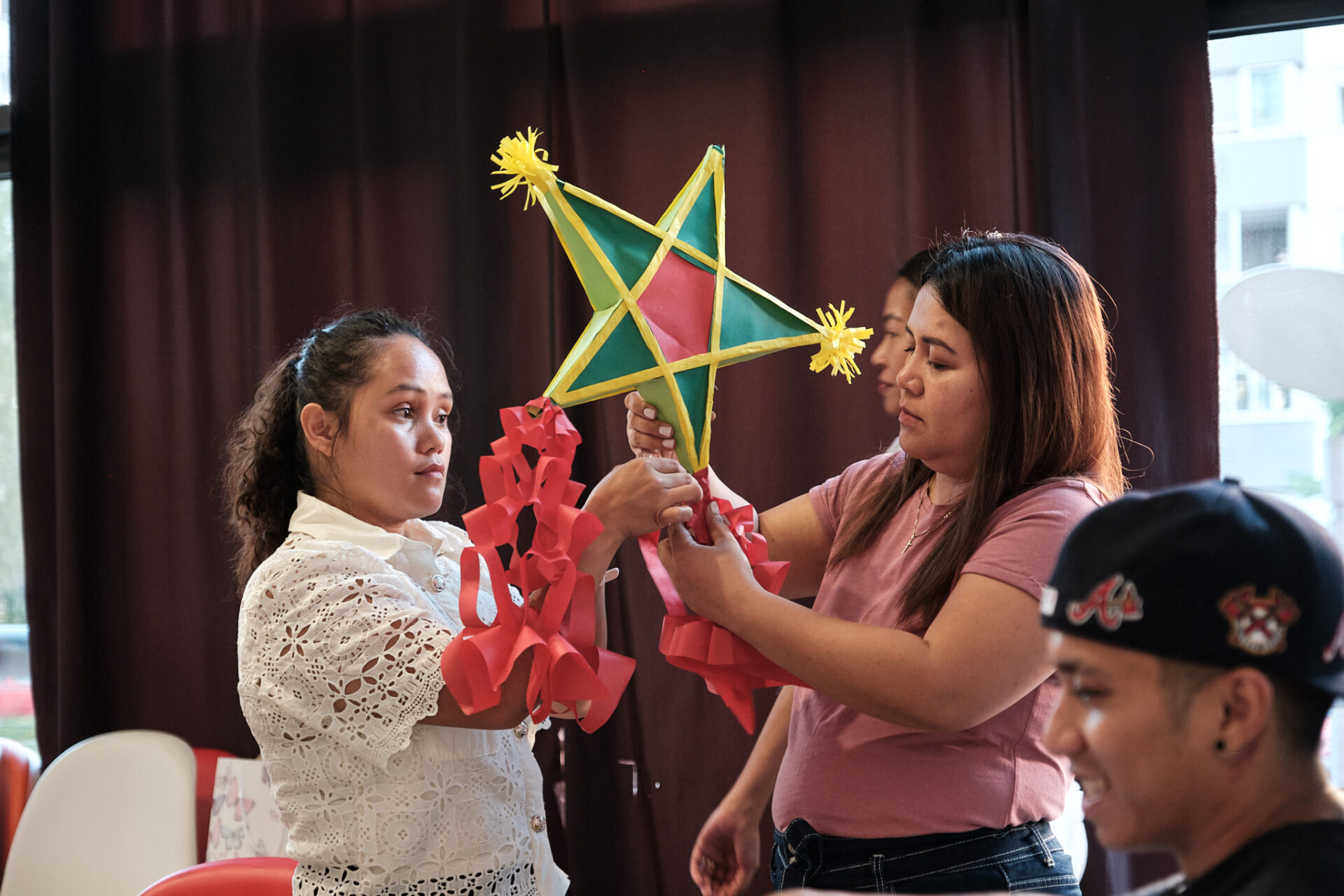Throughout the exhibition, visitors participated in workshops dedicated to playing the Indonesian instrument gamelan, producing batik textiles and Filipino parol lanterns — traditional Christmas decorations — as well as in readings of Indonesian and Filipino fairy tales and discussions on shared coexistence.