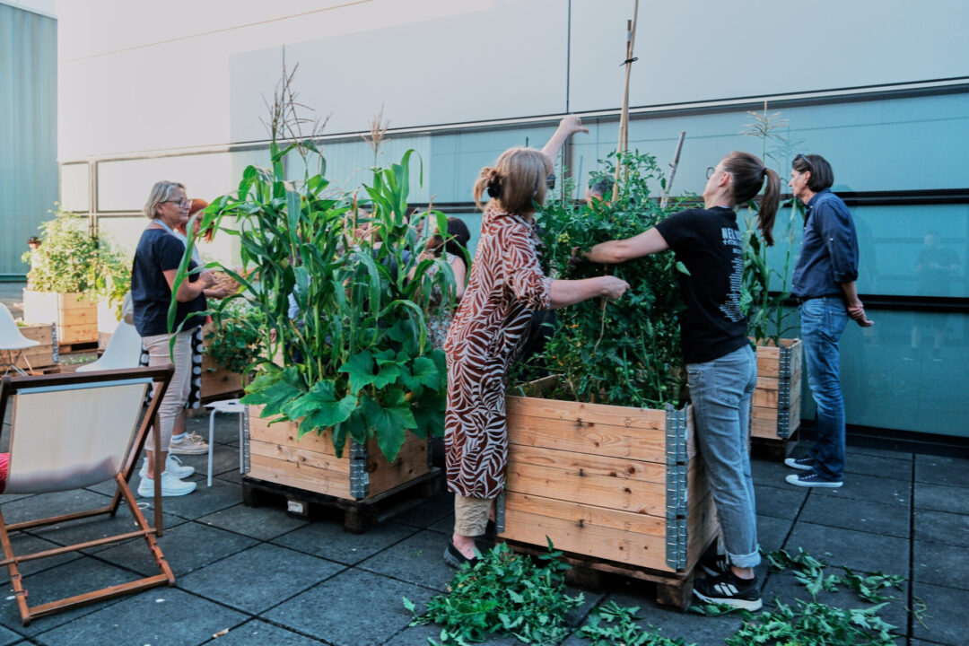 The project of a shared community garden on the museum’s plateau was developed within the framework of Andreja Kulunčić’s retrospective exhibition To Make the World a Better Place (15 May – 12 October 2025), and has continued beyond the closing of the exhibition as an open structure that functions outside the exhibition framework through the practice of collective gardening and collective action.