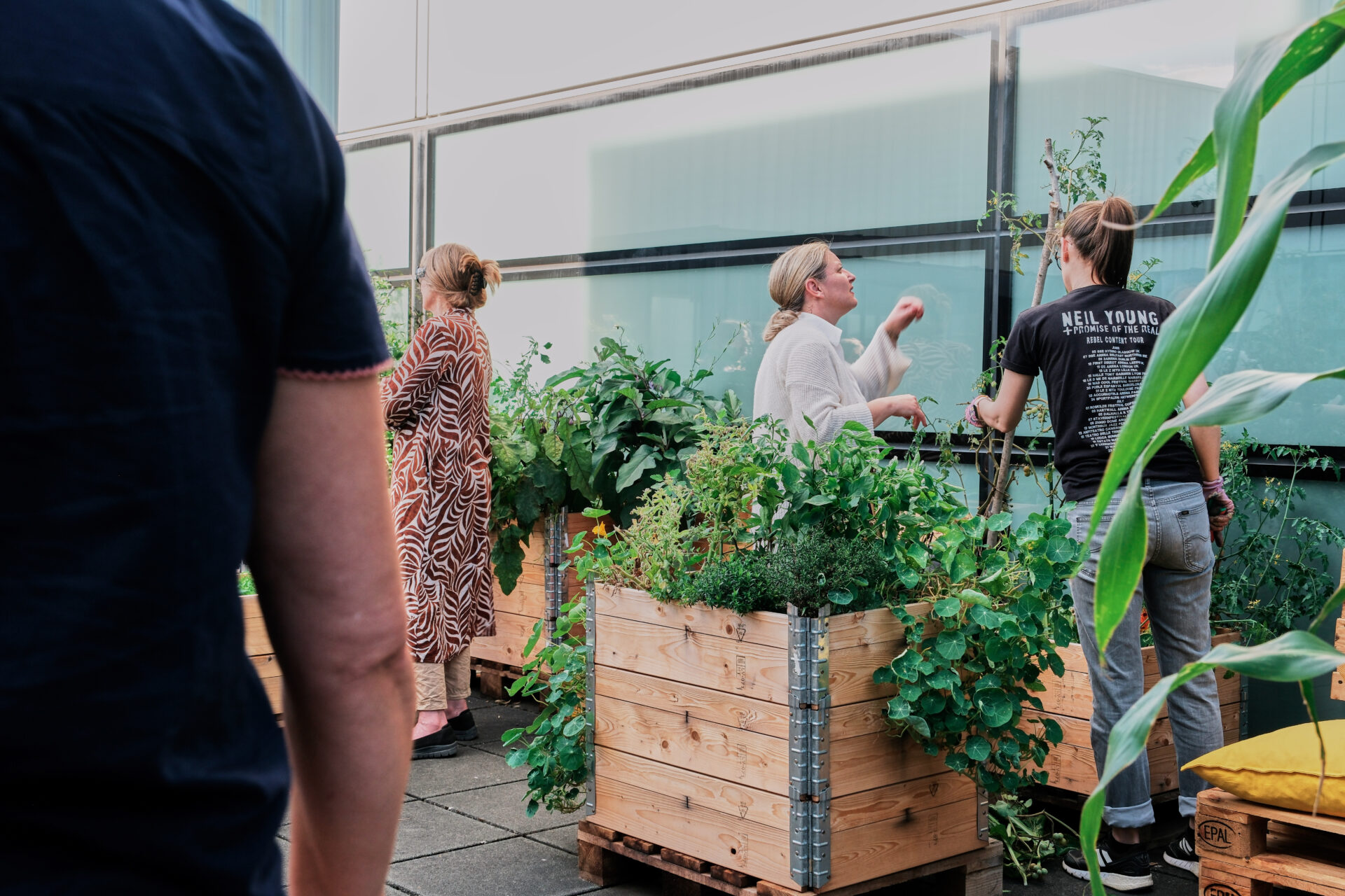 The garden is not merely conceived as a space for rest or conversation, but rather as a place where the shared practice of gardening, with both decorative and edible plants, cultivates a sense of responsibility and care.