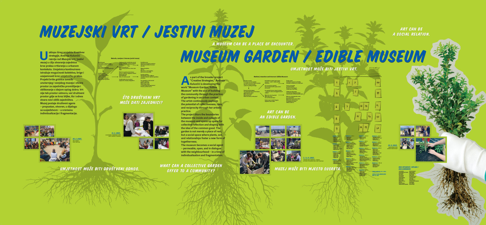 Curator: Amanda De La Garza / Curator mediator: Renata Filčić / Project consultant: Petra Pavleka / Photo documentation of the project: Greta Augustinović Pavičić, Vedran Benović, Lana Dolenec, Buga Kranželić, Ana Opalić, Vanja Babić, Sanja Bistričić Srića, Andreja Kulunčić, Ivo Martinović, Livia Puljak / Workgroup: in collaboration with a group of citizens who responded to the public invitation: Tea Andabaka, Greta Augustinović Pavičić, Divna Bernik, Boris Bernik, Lana Dolenec, Valerija Djanješić, Vesna Dijanek, Diana Grgurić, Mirjana Hrašovec, Latica Ilić, Karolina Kajmak, Valerija Kelemen-Pepeonik, Mirela Kostanjšek, Željko Pavičić, Ana-Marija Pleiades, Sanja Poznanović, Livia Puljak, Mirjana Radovan, Gordana Paškvan Budiselić, Vesna Stojnić, Morena Župan, Davor Žuljević / Special thanks: Dario Juričan (Zeleni inkubator), Lovro Turalija, Tomo Turalija / Production: Museum of Contemporary Art, Zagreb, 2025.